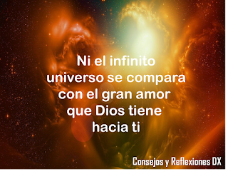 Para muchos el universo es lo más extenso y grandioso que existe, ya que al parecer es infinito porque nadie ha podido recorrer cada uno de sus rincones. Pero si existe algo y alguien mas grande que eso, y es nuestro Dios y el amor que tiene hacia nosotros. Nuestro Padre es tan sorprendente que ni el universo se compara con Él, su amor hacia nosotros parece ser infinito, es por esto que te comparto esta corta reflexión: